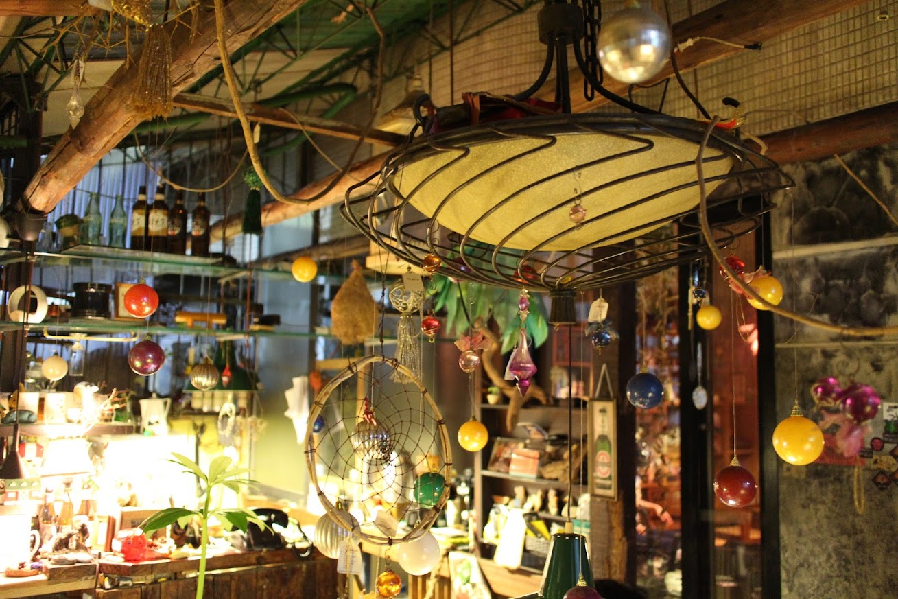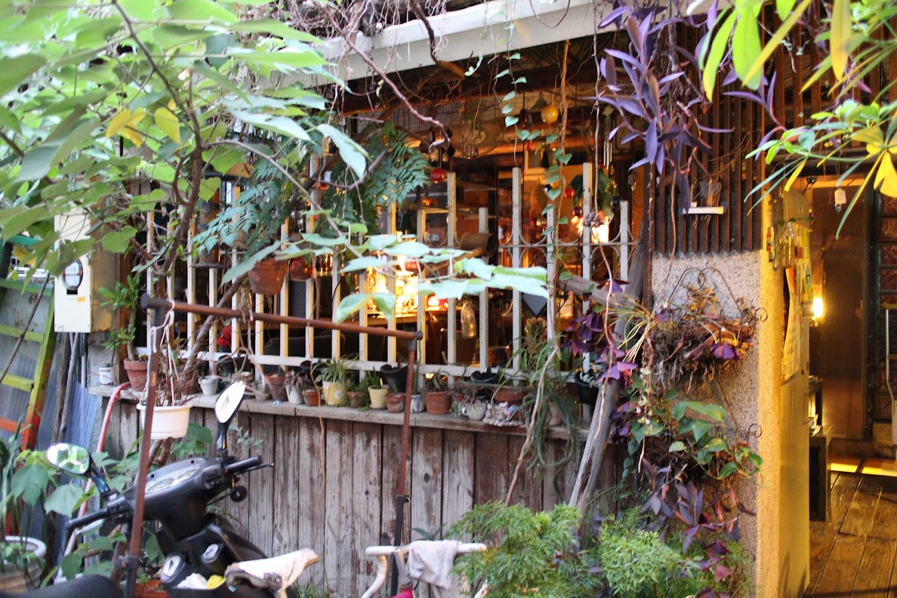 空間不大,隱身在小巷弄間,門牆外滿滿的綠意繚繞,內裡東西繁雜卻不顯錯亂,特別的是各處大大小小別具特色的燈具,點綴了整個空間,讓人有股溫暖而放鬆的感覺。